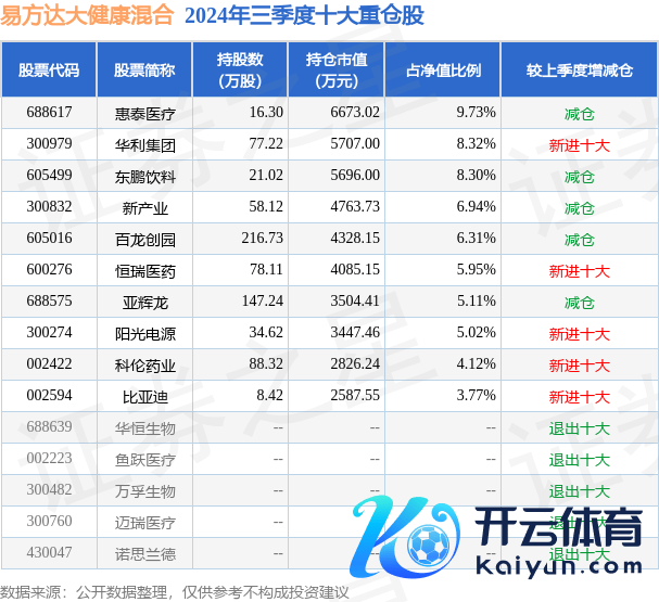 易方达大健康搀杂为搀杂型-纯真基金,阐明最新一期基金季报败露,该基金金钱成立:股票占净值比85.44%,债券占净值比0.09%,现款占净值比28.85%。基金十大重仓股如下: