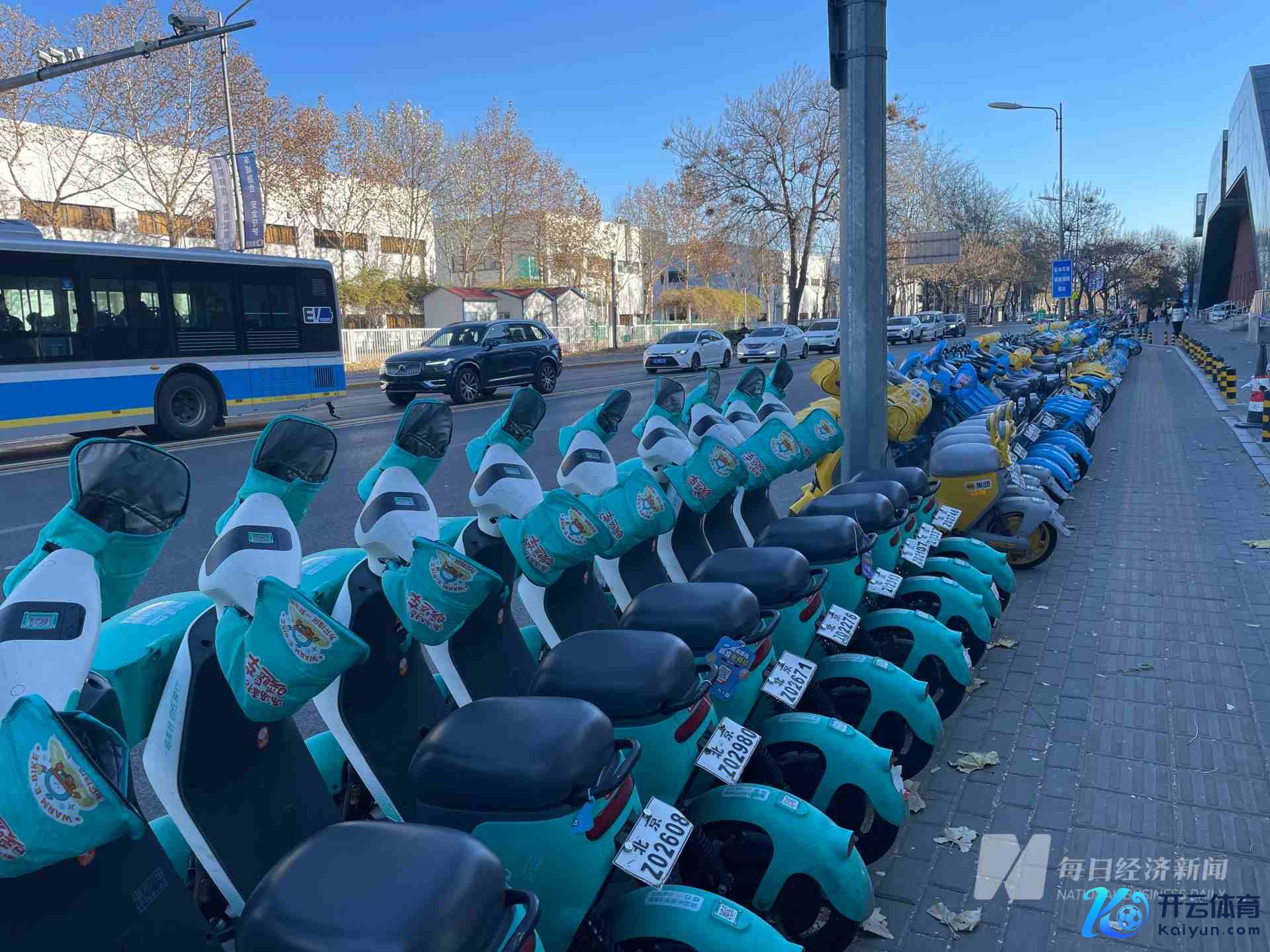 在距离这家山姆超市直线距离约2.5公里的荣京东街地铁站外,则按表情整整皆皆停放着数百辆上牌的分享电单车,分为蓝黄绿三色阵营,差异对应哈啰、好意思团、滴滴青桔三个品牌,部分车辆还装上了防风袖套,但把柄记者的本色体验,袖套唯有薄薄一层,并不御寒。