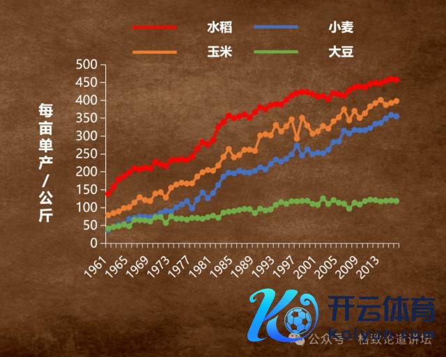 那大豆单产低的问题是不是自古以来就有呢?它和水稻、小麦和玉米的差距一直这样大吗?其实也不尽然。