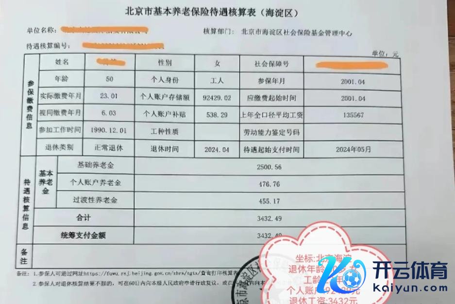 也许因为退休年级比拟早,这位大姨50岁就退休了,也可能当年的缴费基数比拟低,面前退休后,账户只好92429元,退休工资3432.49元。