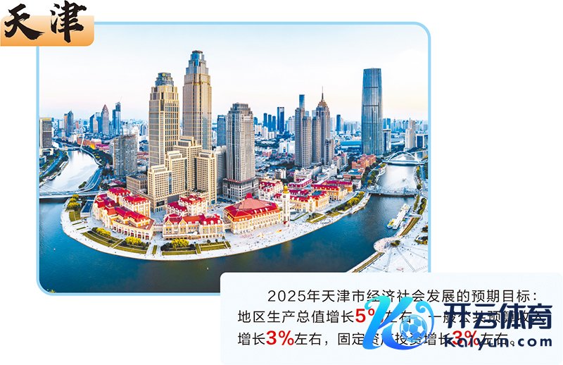 关于2025年天津市经济社会发展的预期规划,论说显露,地区坐褥总值增长5%足下,一般全球预算收入增长3%足下,固定金钱投资增长3%足下,城镇走访休闲率5.5%足下,城镇新增作事30万东说念主,住户浮滥价钱涨幅2%足下,住户东说念主均可运用收入增长与经济增长同步,节能减排减污降碳完成国度下达规划。